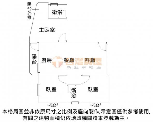 - 格局: 3房(室) 2廳 2衛 1陽台 1廚房