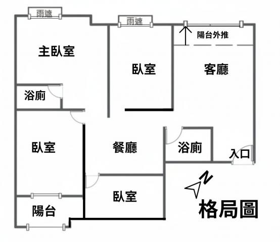 - 格局: 3房(室) 2廳 2衛 1陽台 1廚房