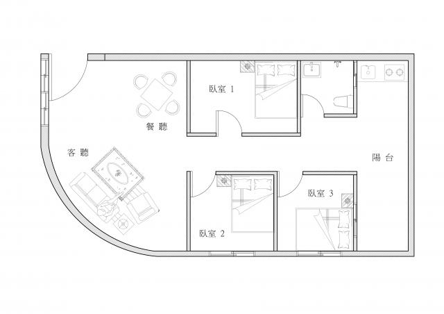 - 格局: 3房(室) 2廳 1衛 1陽台 1廚房