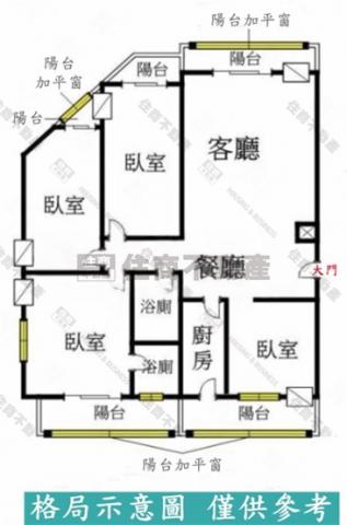 - 格局: 4房(室) 2廳 2衛 3陽台 1廚房