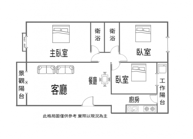 - 格局: 3房(室) 2廳 2衛 2陽台 1廚房