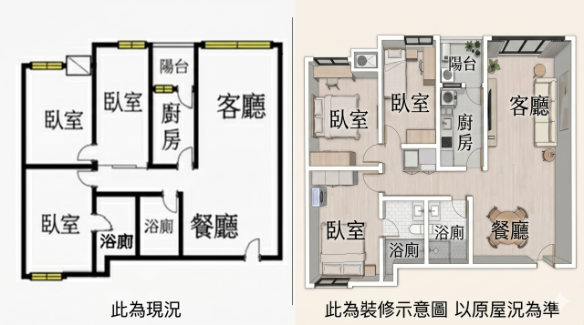 - 格局: 3房(室) 2廳 2衛 1陽台 1廚房