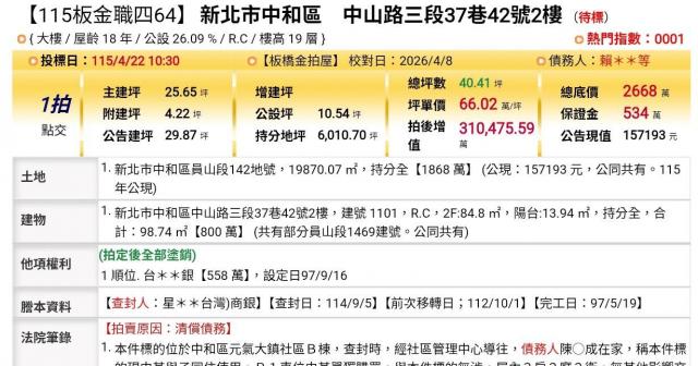 台北法拍專家 新北市中和區中山路三段37巷42號2樓