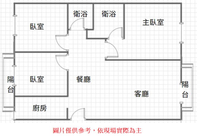 - 格局: 3房(室) 2廳 2衛 2陽台 1廚房