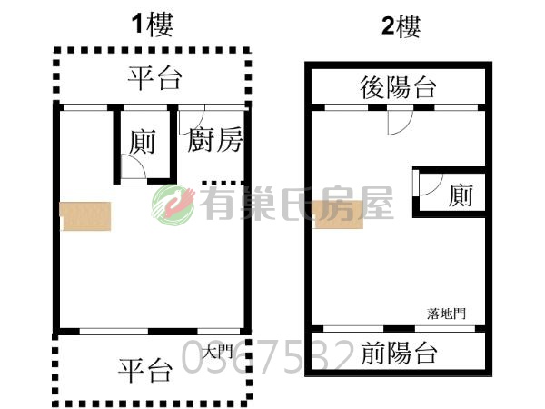 - 樓別/樓高: 1~2樓 / 2樓