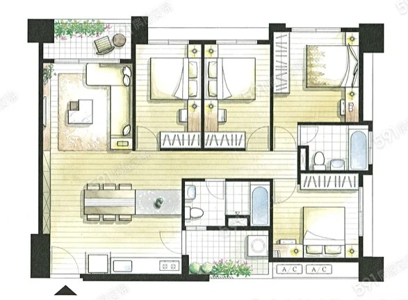- 格局: 4房(室) 2廳 2衛 1陽台 1廚房