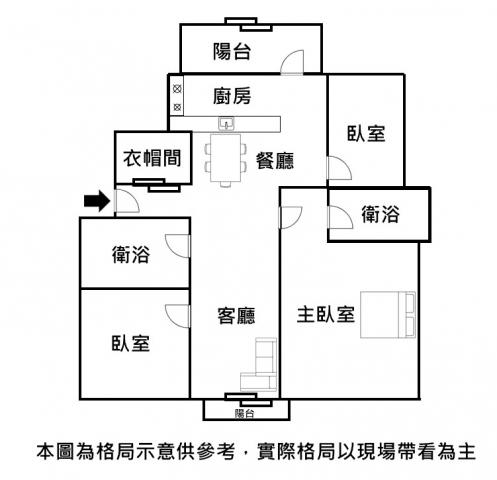 - 格局: 3房(室) 2廳 2衛 2陽台 1廚房