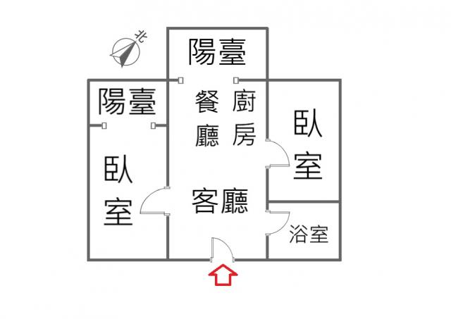 - 格局: 2房(室) 1廳 1衛 2陽台 1廚房