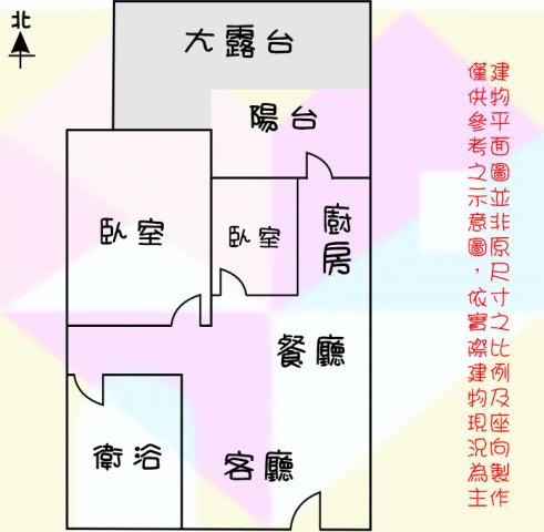 - 格局: 2房(室) 2廳 1衛 1陽台 1廚房