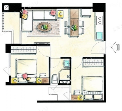 - 格局: 2房(室) 2廳 1衛