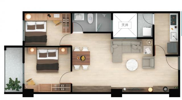 - 格局: 2房(室) 2廳 1衛 2陽台 1廚房