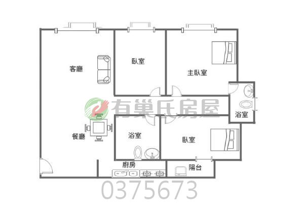 - 格局: 3房(室) 2廳 2衛