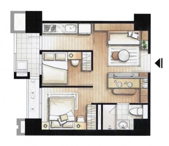 - 格局: 2房(室) 2廳 1衛 1陽台 1廚房