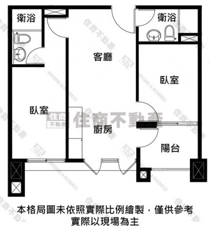 - 格局: 2房(室) 1廳 2衛 1陽台