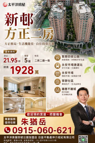 岳哥房產觀察室【捷運永安站|稀有釋出】新邨方正高坪效二房・離