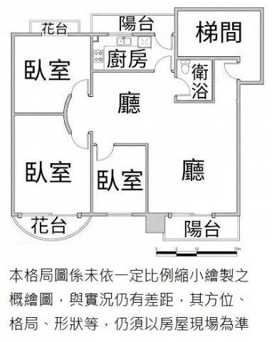 - 格局: 3房(室) 2廳 1衛 2陽台