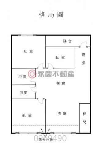 - 格局: 3房(室) 2廳 2衛 1陽台 1廚房