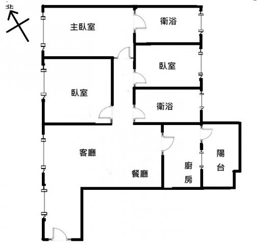 - 格局: 3房(室) 2廳 2衛 1陽台 1廚房