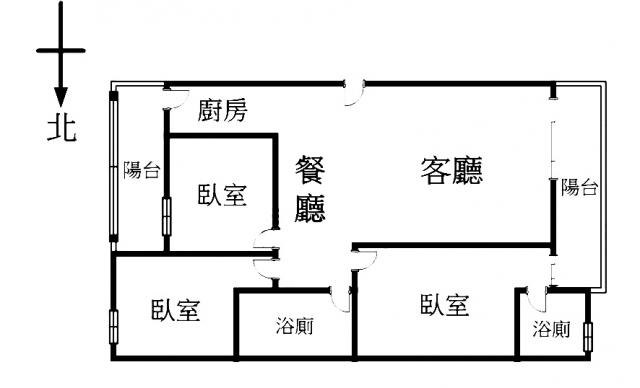 - 格局: 3房(室) 2廳 2衛 2陽台 1廚房