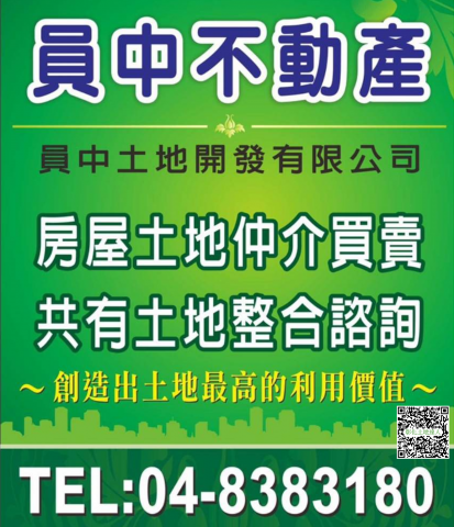 員中不動產致力於地開發整合,買賣銷售,其中包含共有土地的整合買賣,各種疑難土地的處理,有土地產權問題,或是使用糾紛,歡迎電洽TEL:048383180