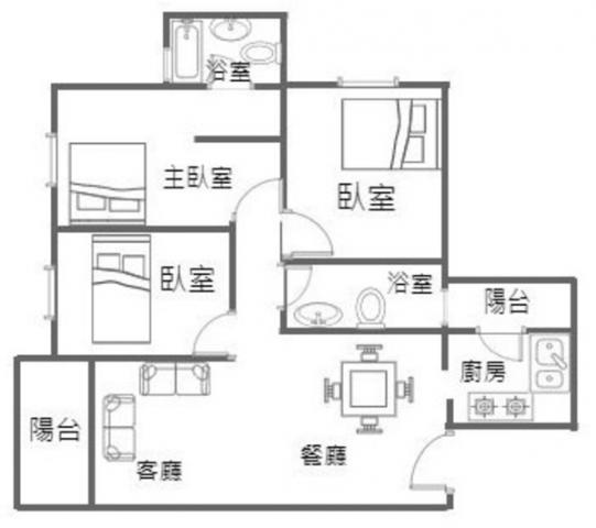 - 格局: 3房(室) 2廳 2衛 2陽台 1廚房