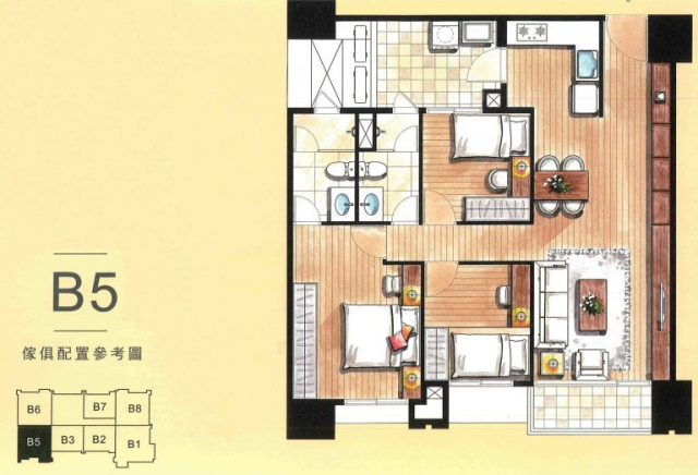 - 格局: 3房(室) 2廳 2衛 2陽台 1廚房