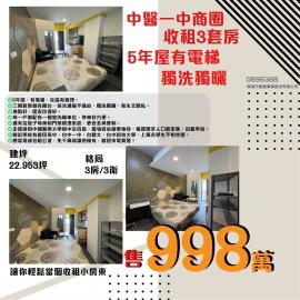 潭子優質房仲 中醫一中商圈|收租3套房|5年屋有電梯|獨洗獨曬