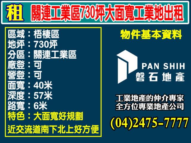 關連工業區正西濱路上460坪工業地出租