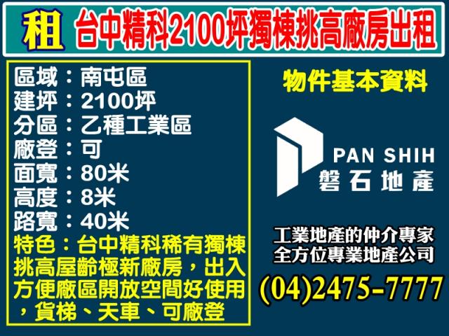 太平|2500坪全合法|挑高RC立體廠房出租