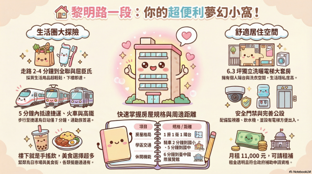 黎明路全新獨洗曬-電梯-大套房可請租補6.3坪