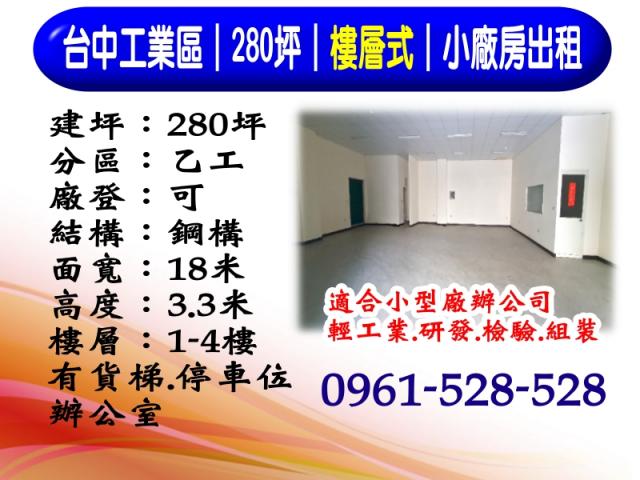 台中精科稀有570坪優質廠辦出租