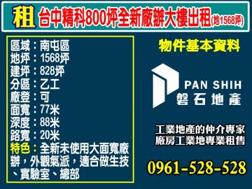 台中精科-地1568坪全新廠辦大樓出租