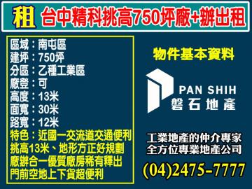 台中精科600坪稀有廠辦出租(3F)